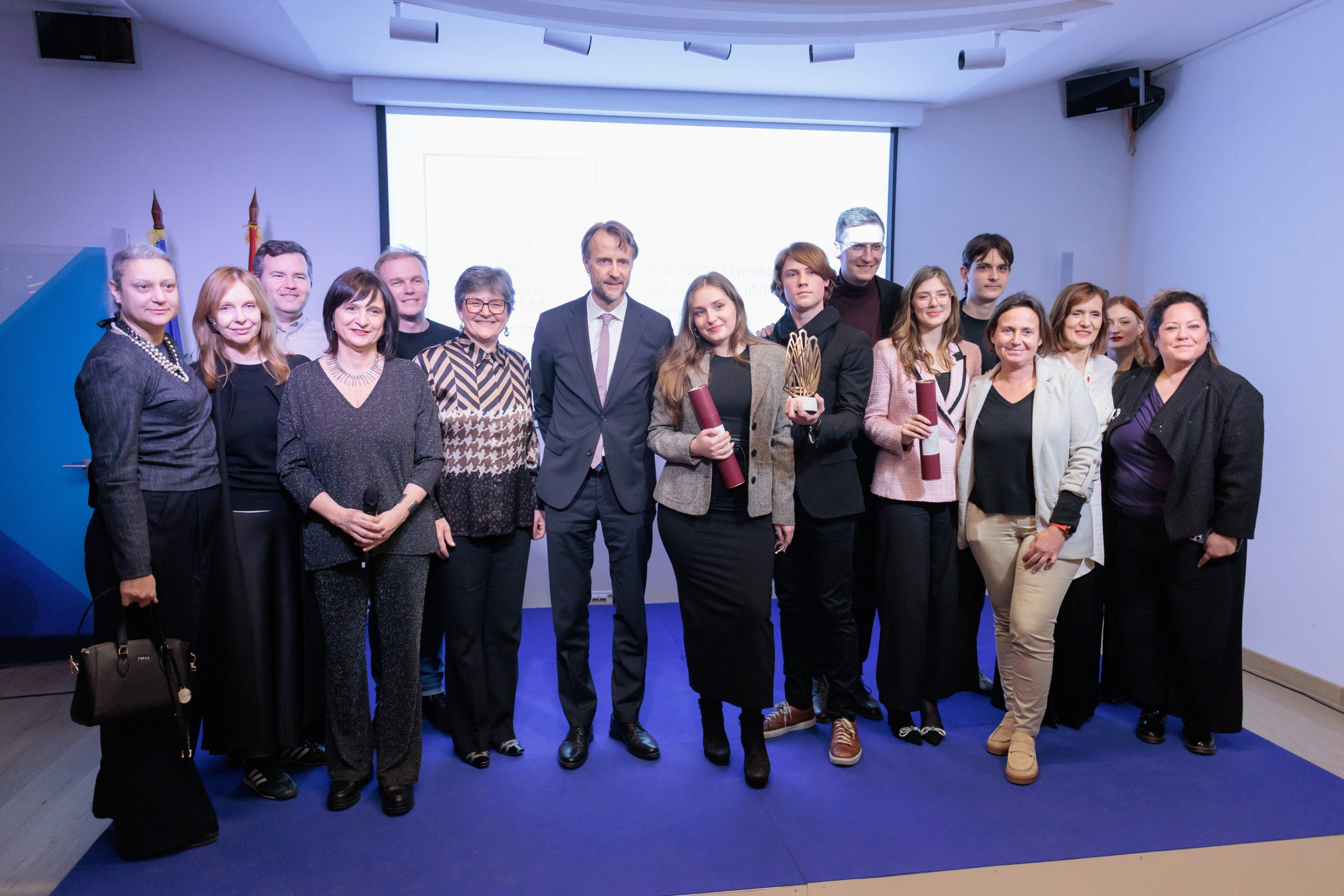 Награду је уручио амбасадор и шеф Делегације ЕУ у Србији, Андреас фон Бекерат, који је нагласио да је очување културног наслеђа кључно за разумевање прошлости и оријентацију ка будућности. Захвалио је студентима на њиховом залагању, храбрости и доприносу промоцији владавине права.