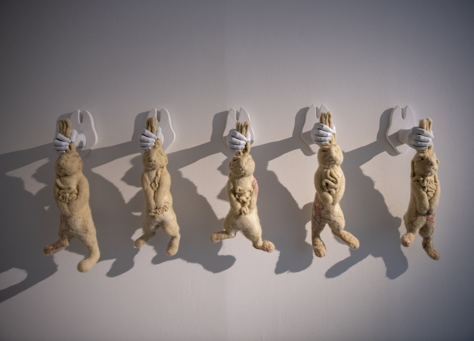 Радови представљени на изложби обухватају скулптуре и просторне инсталације изведене у текстилу, пре свега вуни, кроз које аутор истражује теме телесности, сећања, трауме и материјалности. Специфичним повезивањем традиционалних текстилних техника и савременог уметничког израза, Пулаи остварује снажан визуелни и емотивни наратив, препознат од стране стручне и шире јавности.
