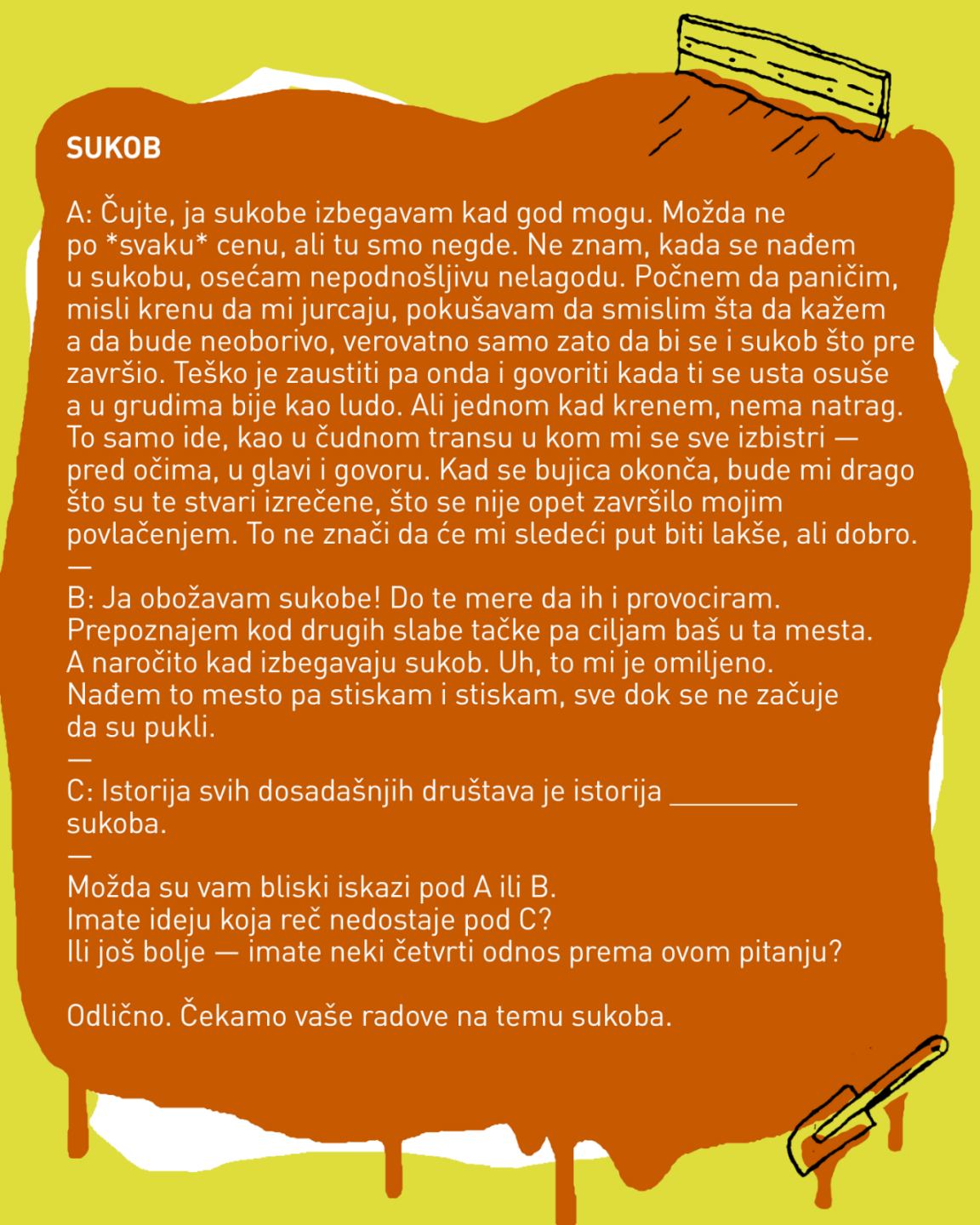 Одлично. Чекамо ваше радове на тему сукоба.